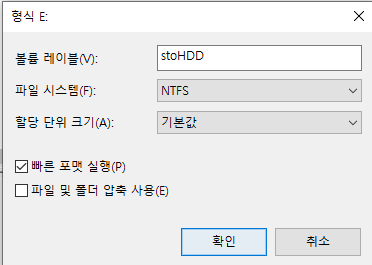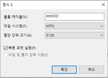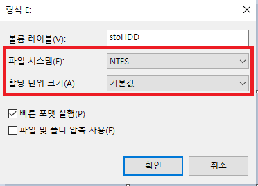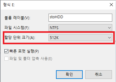 여기서 문제는 파일 시스템과 할당 단위 크기이다. (사실 저기서 만져 볼만한게 저 두개 밖에 없다.)
