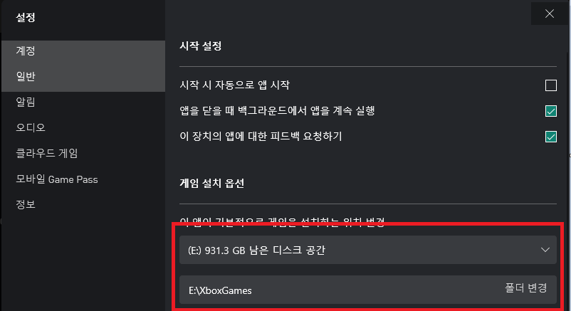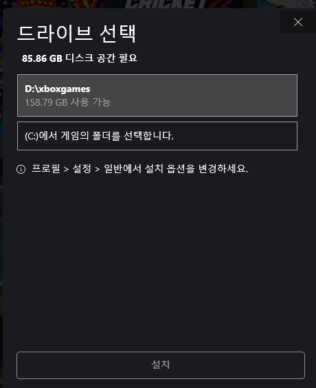 게임 패스에서 기타 드라이브를 잡으려고 설정들어가면 이렇게 뜨는 경우가 있다. (대 부분은 D드라이브겠지만나 같은 경우는 E드라이브가 말썽이다.)