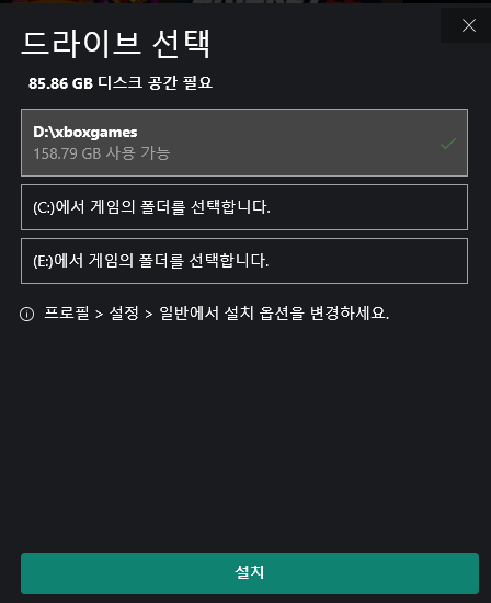 게임을 설치하러 가면 이렇게 E드라이브가 잘 잡히는 것을 볼 수 있다.