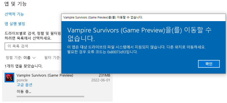 오류 코드 0x80073d13