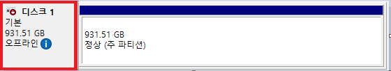 여기를 오른쪽 클릭하여 오프라인 했다가 다시 온라인으로 바꿔준 다음