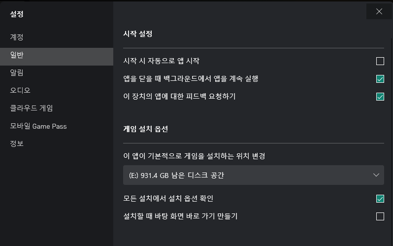 다시 게임 패스 - 설정을 들어가 보자.